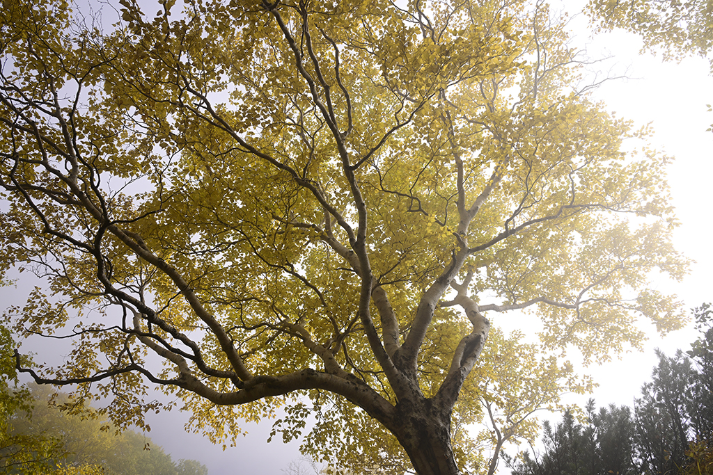 一足先にピークを迎えた小屋の東斜面は晩秋の景色になってきました。