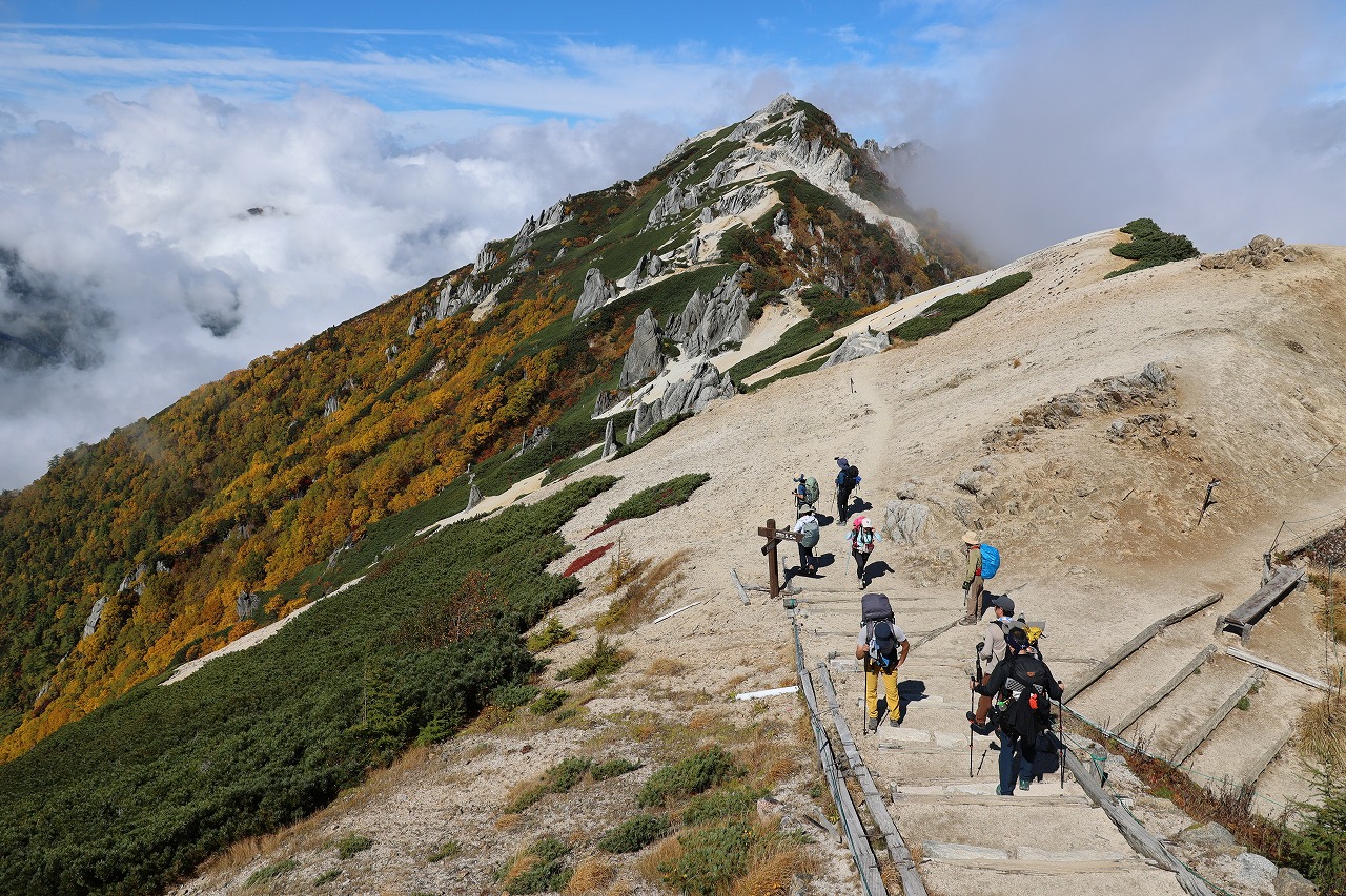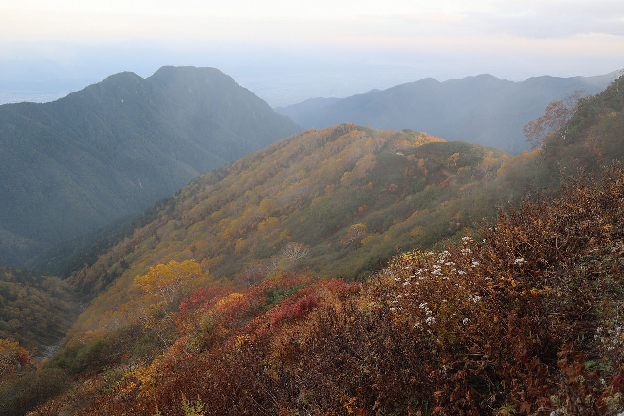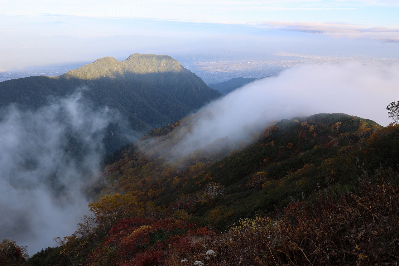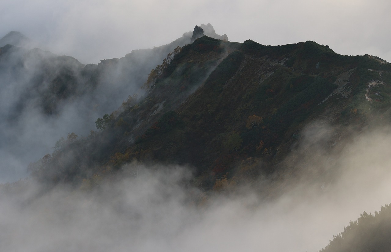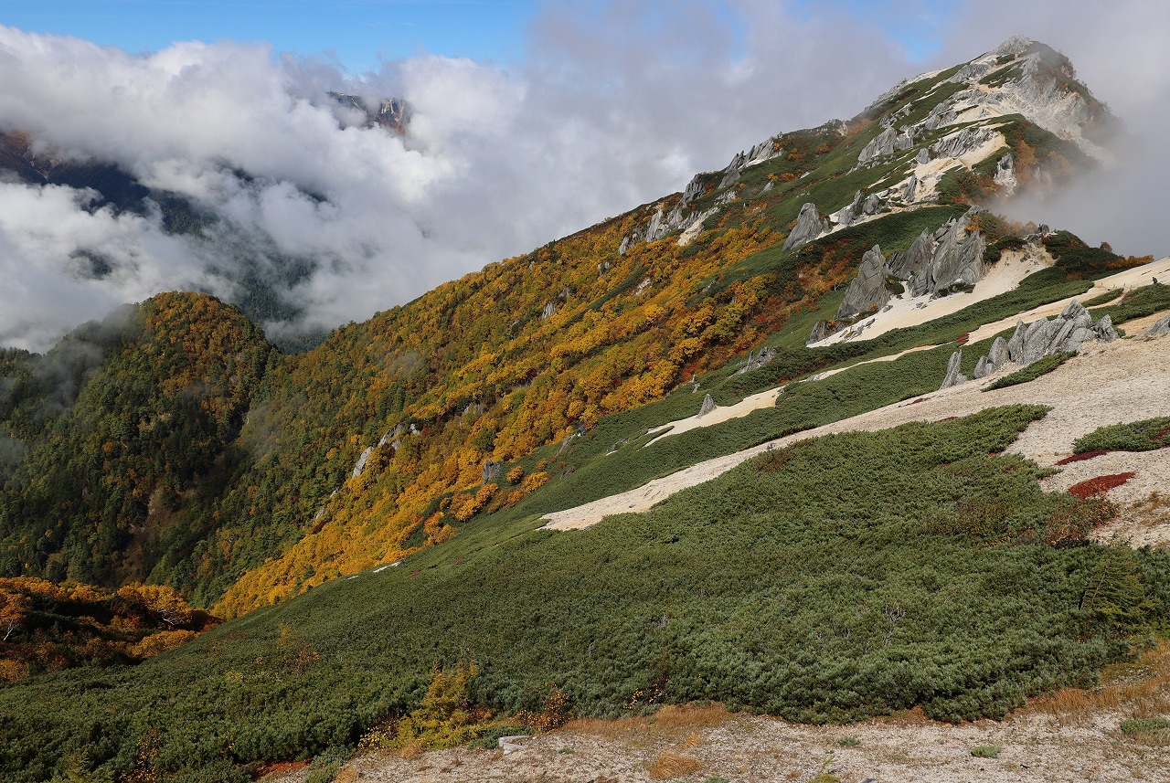 そのガスが取れて全容の見えた合戦尾根は紅葉がさらに下へと進んでいることがわかりました。