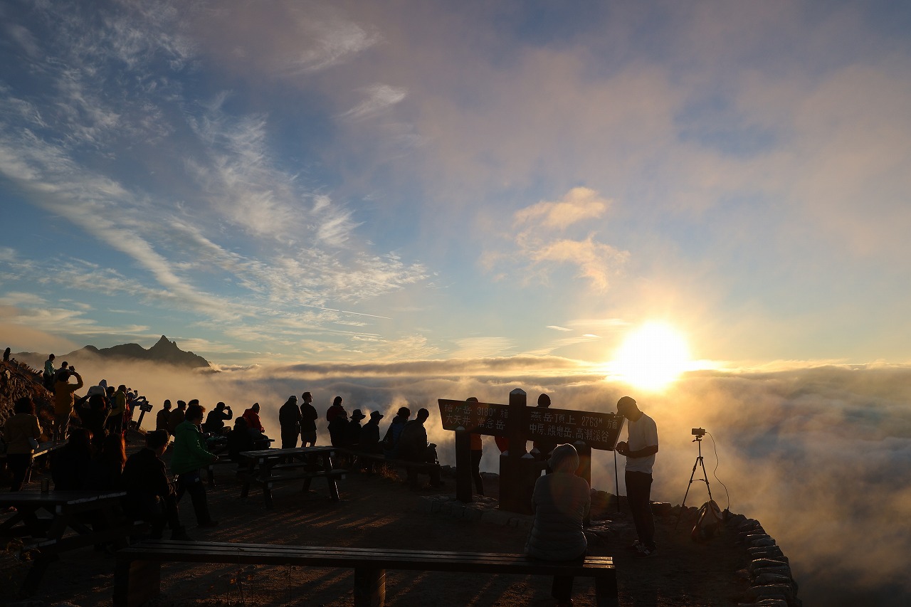 安曇野側のガスはなかなか取れなかったのですが、そのガスの中を登って来られた方は一気に展望が広がり、この美しさに皆様大変感動されていました。