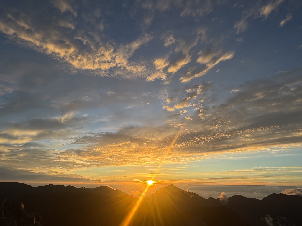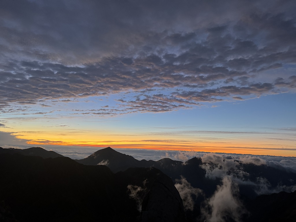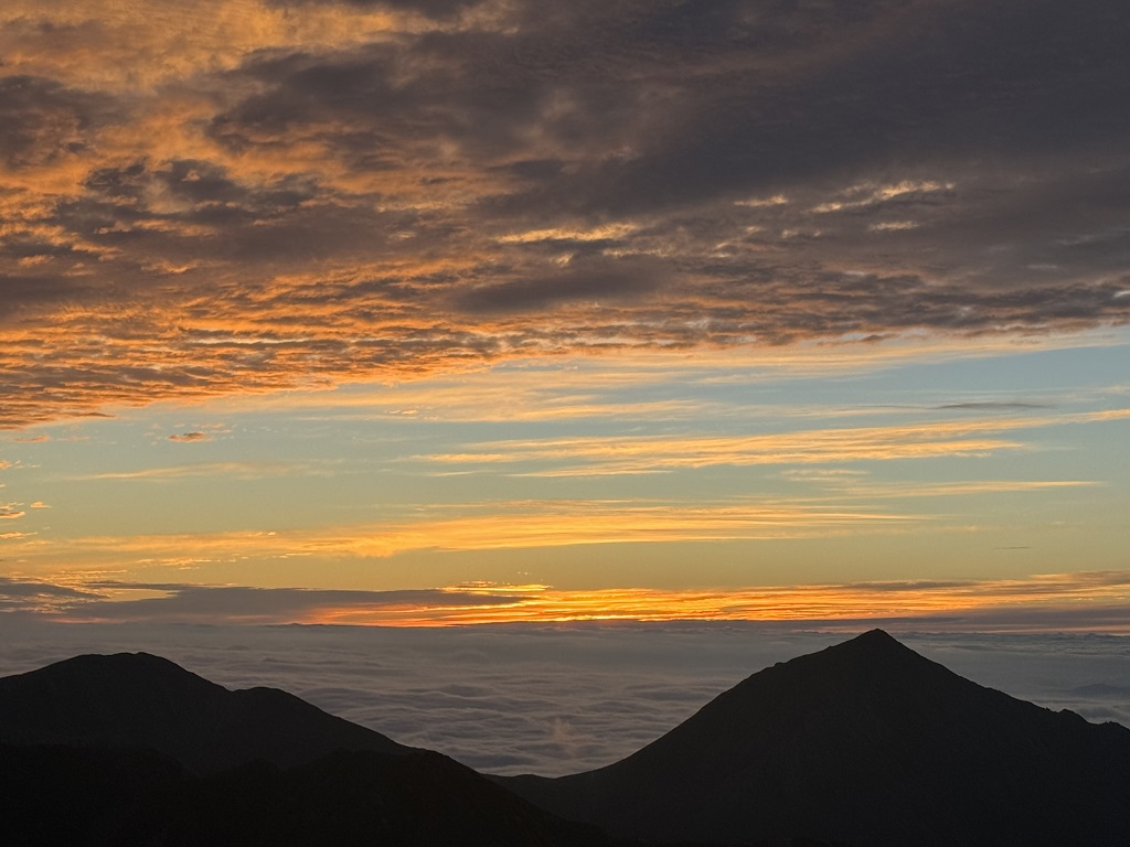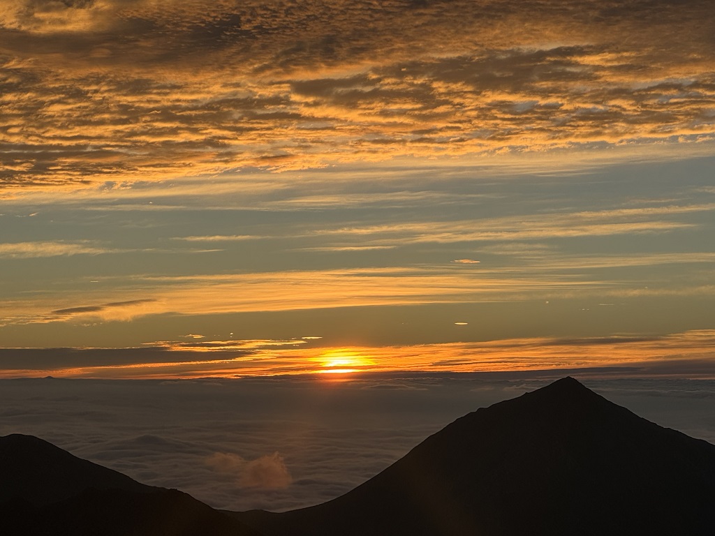 太陽は雲海から少し顔をのぞかせただけで、うろこ雲を一気にオレンジ色に染めていきます。