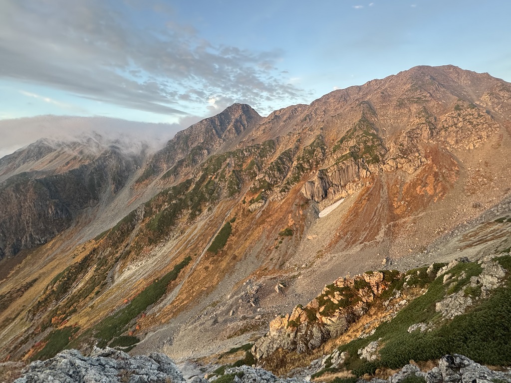 南岳方面の山肌も太陽の光に照らされて、だんだんと色づき始めます。