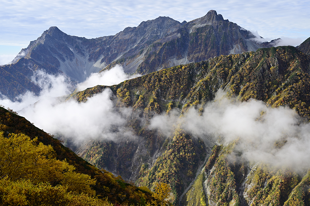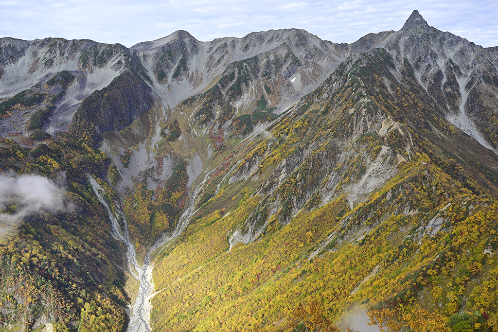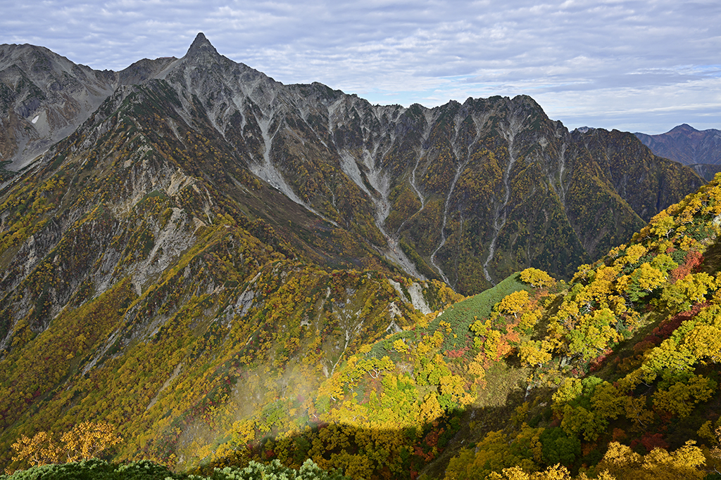 色付く横尾尾根と穂高連峰。涸沢もさぞかし綺麗だろうと、想像が膨らみます。