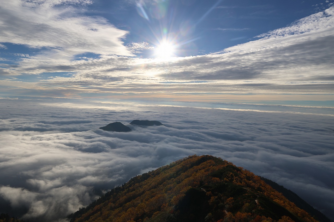 午後になって少し薄くはなりましたが、雲海は消えることなく、終日雲の上となりました。少しづつ下へと移動し始めた紅葉ですが、まだまだ紅葉は楽しめそうです。よく来られるお客様からも今年の紅葉はいいねとたくさん聞かれます。今年は紅葉の当たり年といっていいでしょう。