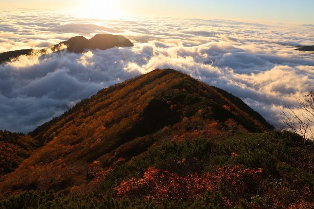 昨日より少し低くなりましたが、今日も雲海が広がっていました。雲海、紅葉。両方が美しさを引き立てあい、素敵な日の出となりました。