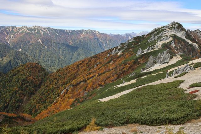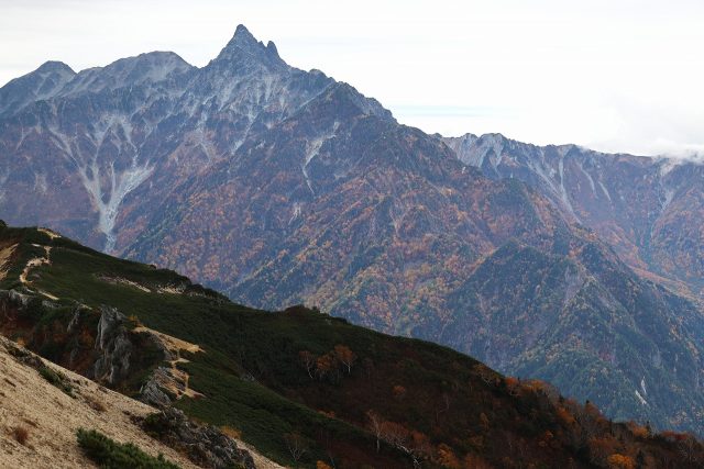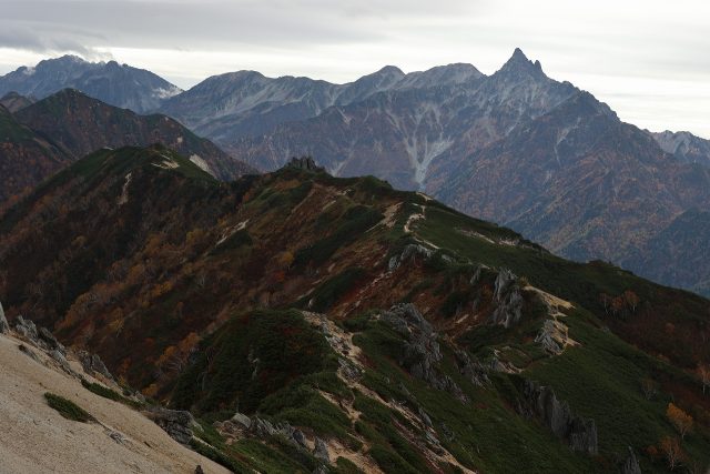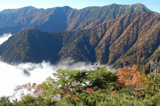 燕山荘からは北鎌尾根がよく見えます。その北鎌尾根の紅葉も2600mくらいまで下がり出してきているのがよく分かります。ここから見ていると紅葉が上から下へと下がっている様子がよくわかります。