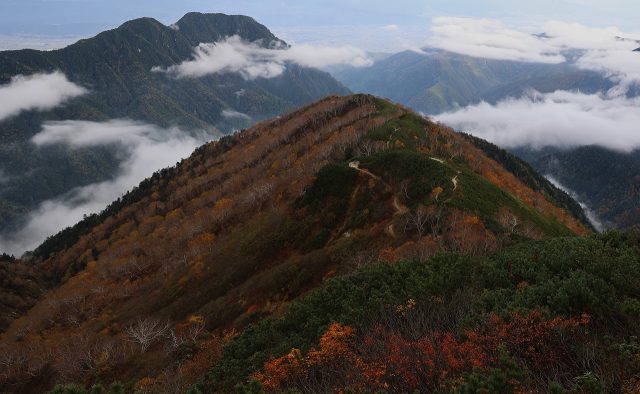 天気は下り坂へ向かっているのかだんだんと雲の量が増えてきました。明日からは連休がはじまりますが、少なからず台風の遠い影響は受けてしまいそうです。夏の雨とは違い、気温の低い時期の雨の稜線歩きはしっかりとした装備が大切になってきます。また、レイングローブもお忘れなく。樹林帯の中を歩く登山と森林限界より上を歩く登山では、これから先の季節、特に悪天時は全く別のものになってきます。