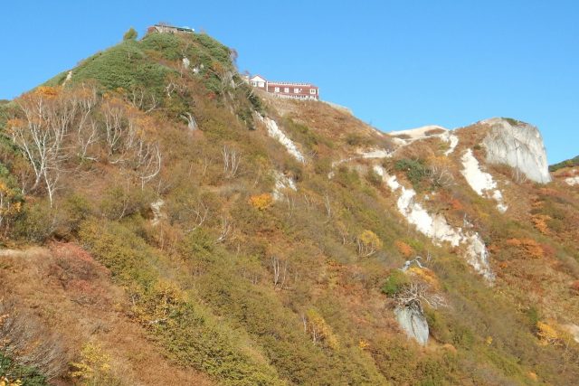 合戦尾根上部の木々の落葉が始まり出してきています。朝のうちはやや強い風が吹いていて葉っぱが空を舞うのを見かけました。落葉が進むと見通しもよくなってきて、ダケカンバの幹の白さが目立つようになってきます。また違った楽しみがあります。