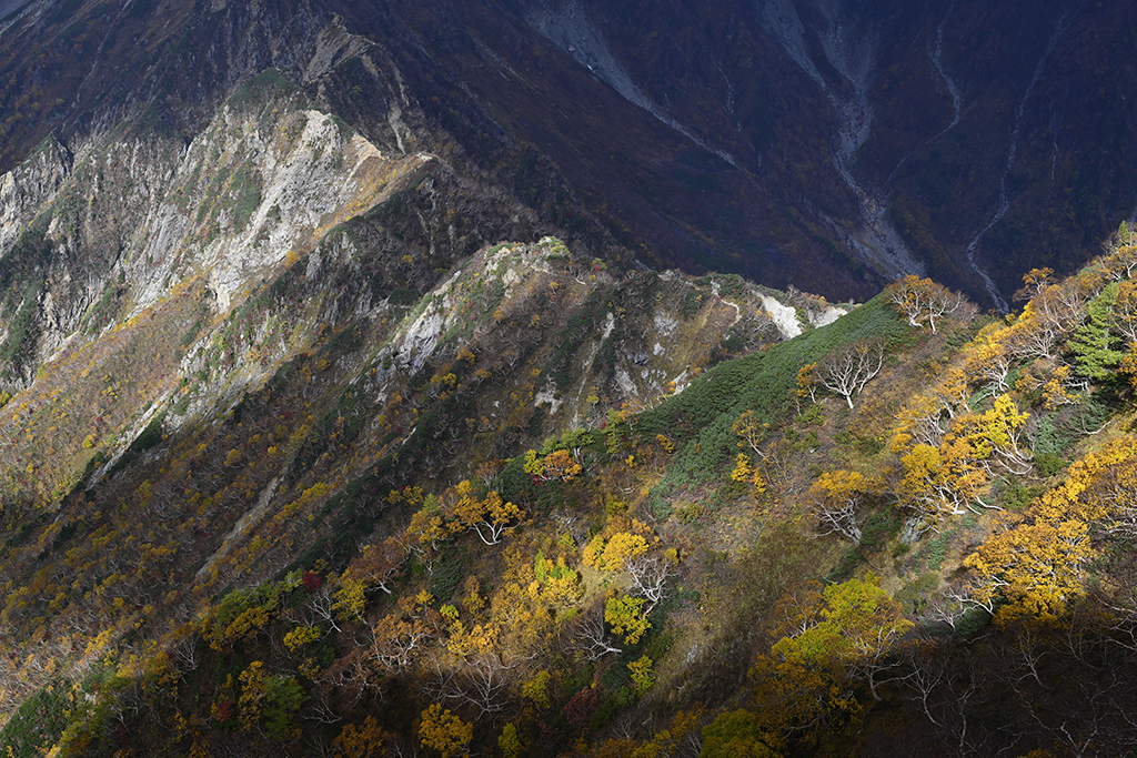西岳の槍沢側斜面は風当たりが弱かったのか、他より残っている感じです。