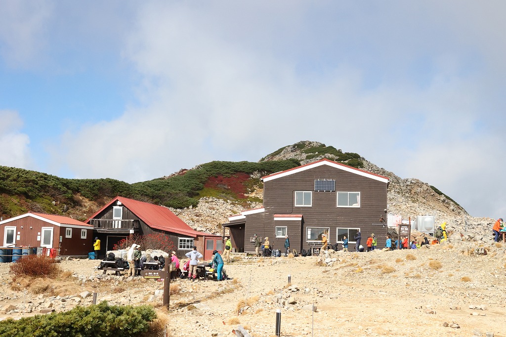 午前中は昨日に引き続き強く風の吹いていた小屋周辺。通過のお客様で賑わいを見せていました。