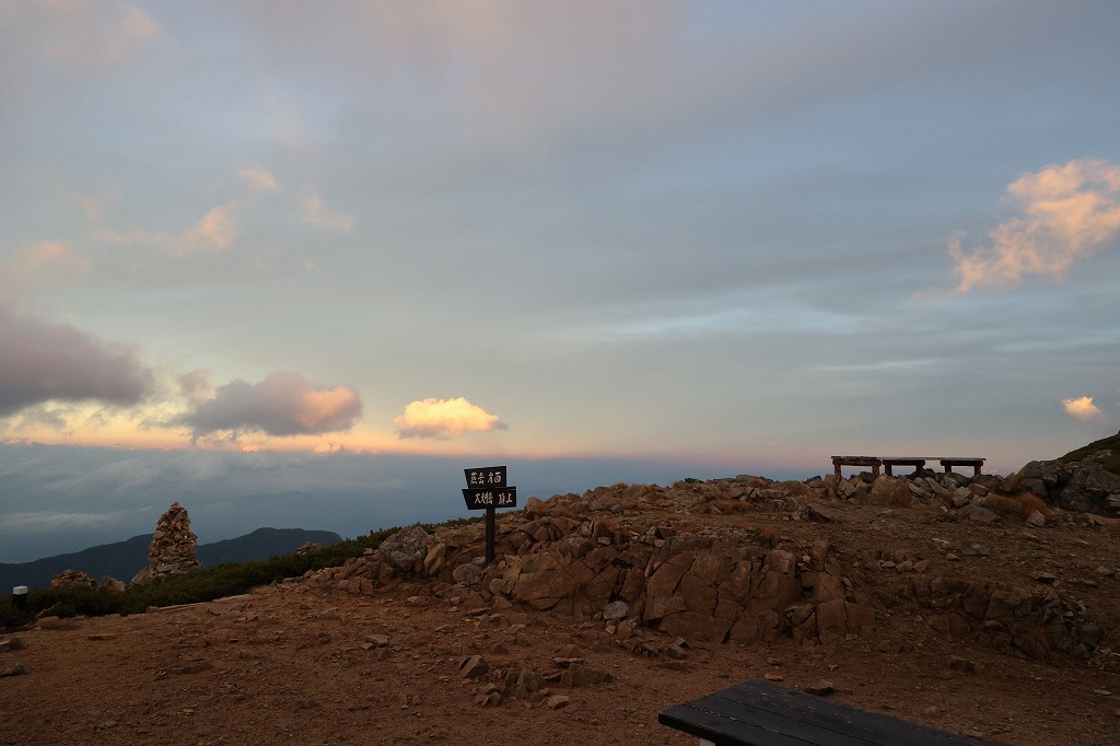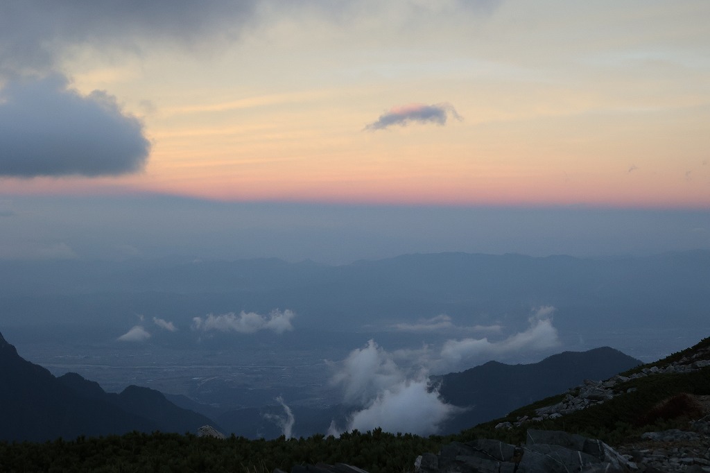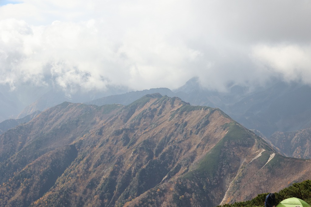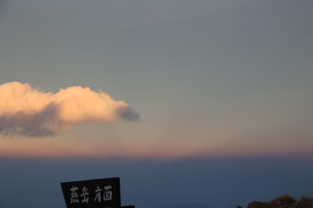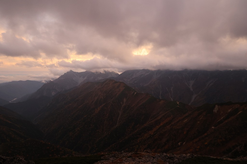 夕方。槍穂高は残念ながら雲の中。