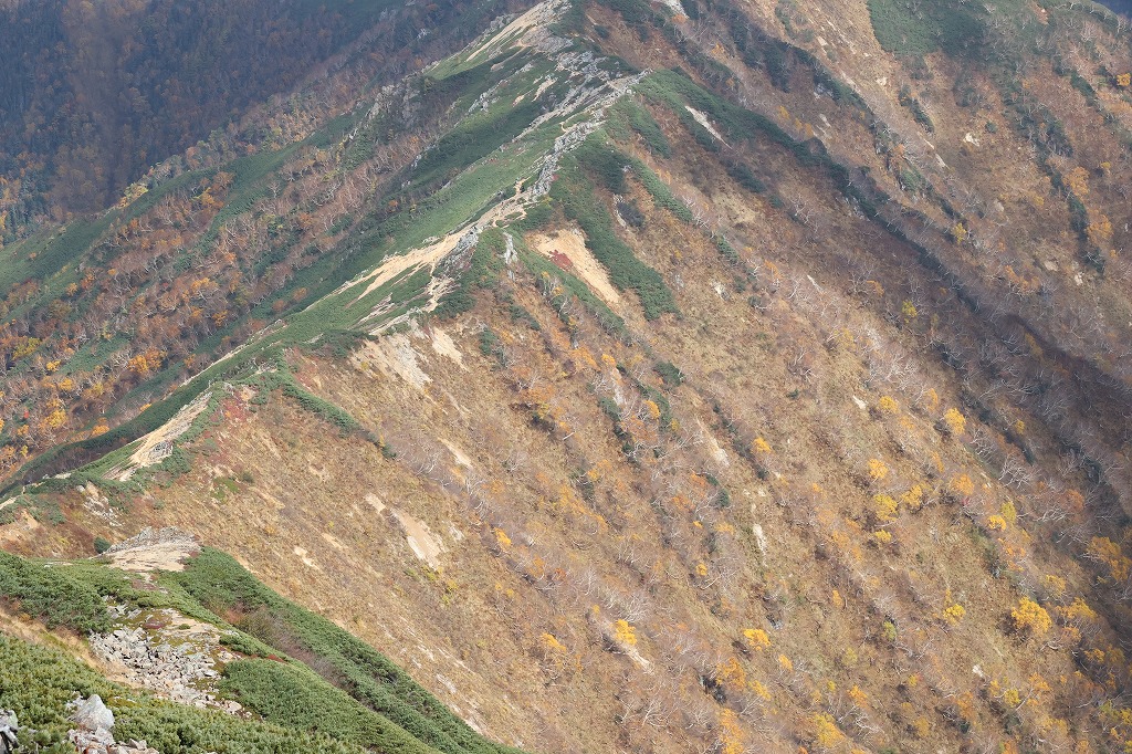いつの間にか茶色くなった稜線上