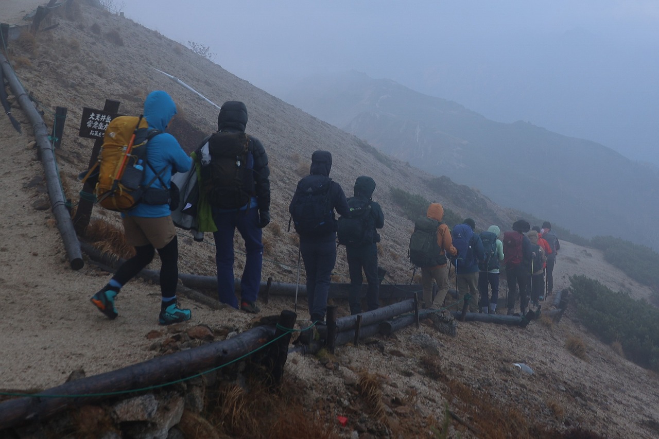 朝の早いうちは日の出こそ見られたもののまだガスに包まれていました。こんな時間から縦走に出られる方は次の目的地を目指して、出発されて行きました。今日で燕山荘グループのヒュッテ西岳、明日でヒュッテ大槍の今シーズンの営業は終了となります。槍ヶ岳方面を目指される方は注意が必要です。10月の連休を過ぎると営業を終える小屋が多いので、事前の下調べをしっかりされるといいでしょう。
