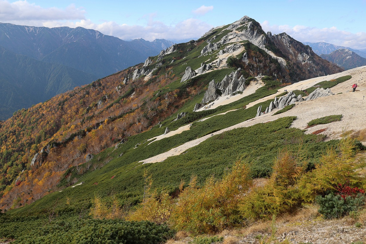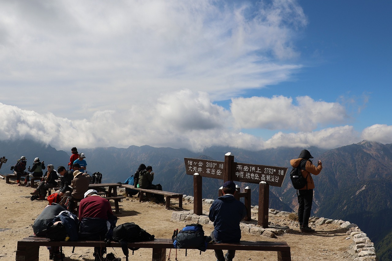 今日の日中は雲が多いものの、まずまずの天候となりました。連休中日の晴天とあって日帰りの方も多く、午前中を中心に賑わいを見せました。10月の半ばというのに安曇野では30℃近くの気温となったようで、山の上もこの時期としては暖かい日中でした。10月の連休頃になると初雪の便りがあってもおかしくない季節なのですが、今年はまだ気温が高めの日が続いています。