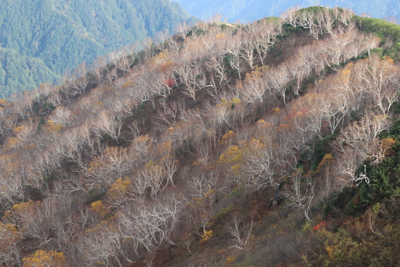 昨日の雨と風で落葉がだいぶ進んでいました。そうなるとダケカンバの木の幹の白い色が美しくなってきます。茶色い山肌とのコントラストがとてもきれいです。紅葉はあっという間に過ぎてしまいましたが今年はいつもより長く楽しめた気がします。