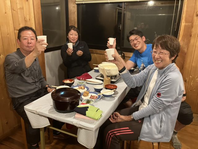 台風の影響かキャンセルが多くて少しこぢんまりした最終日の夕食。