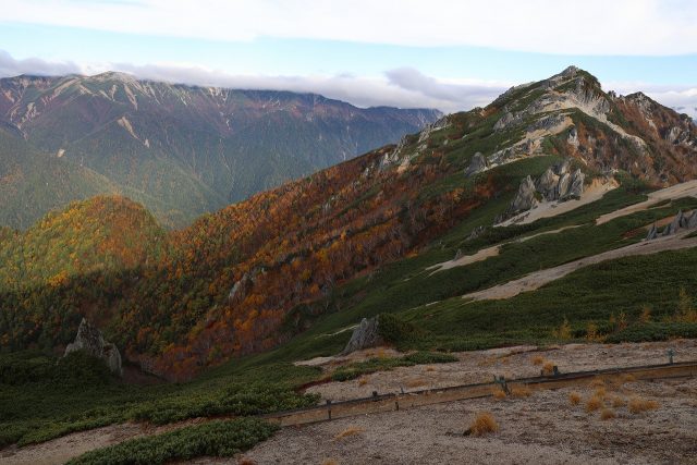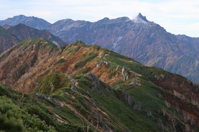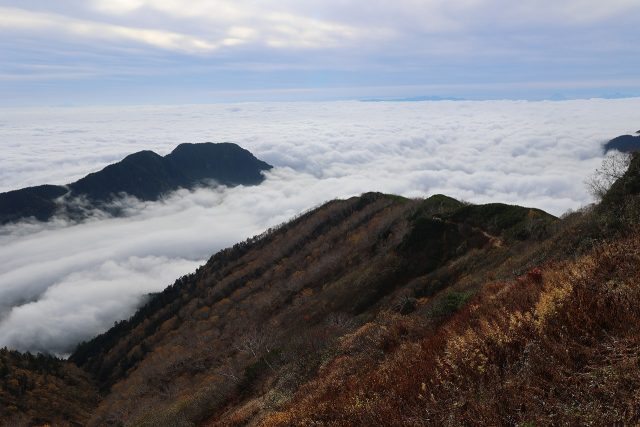 稜線付近は茶色の晩秋の色へと変わりつつあります。しかし、それもまた美しいと感じます。