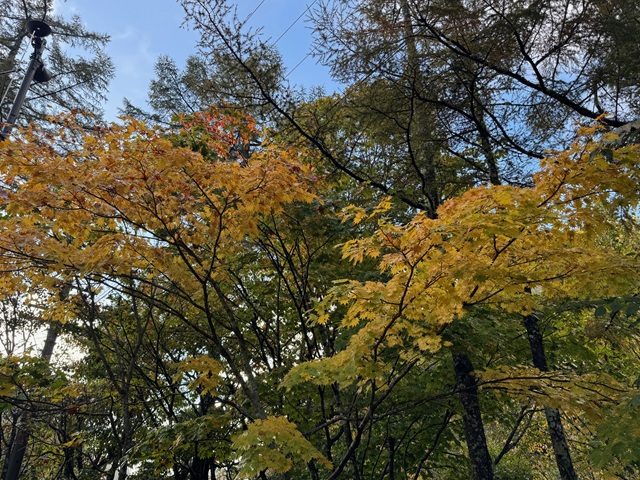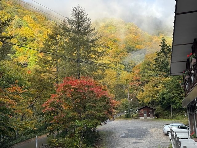 秋はより深まり、稜線に見えていた美しい紅葉は段々と麓に向けて染めていき、今現在有明荘からの景色は素晴らしいものとなっています。
