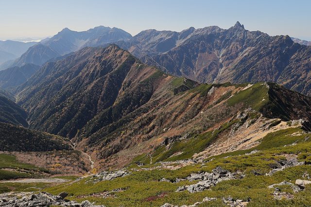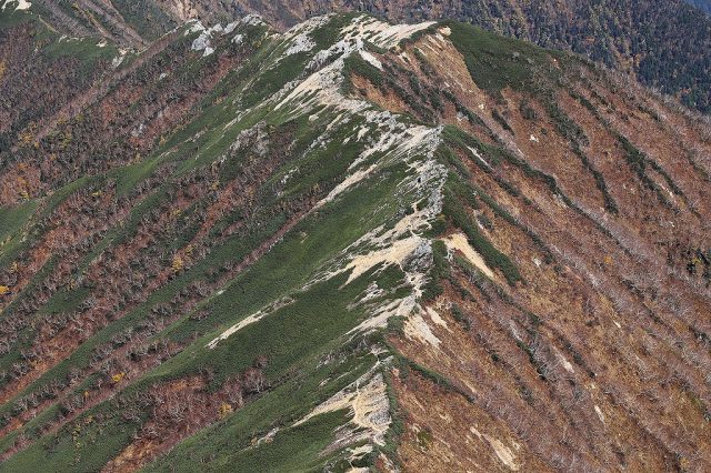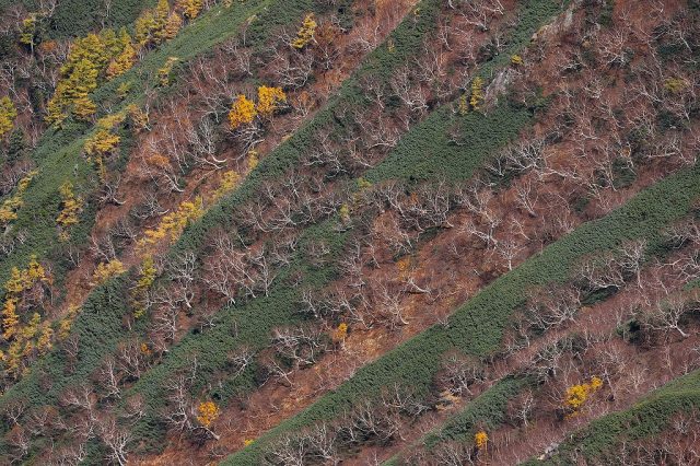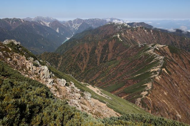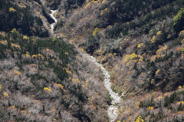 一方で二ノ俣谷を覗くと、まだ点々とダケカンバの黄葉が残り、いいアクセントです。