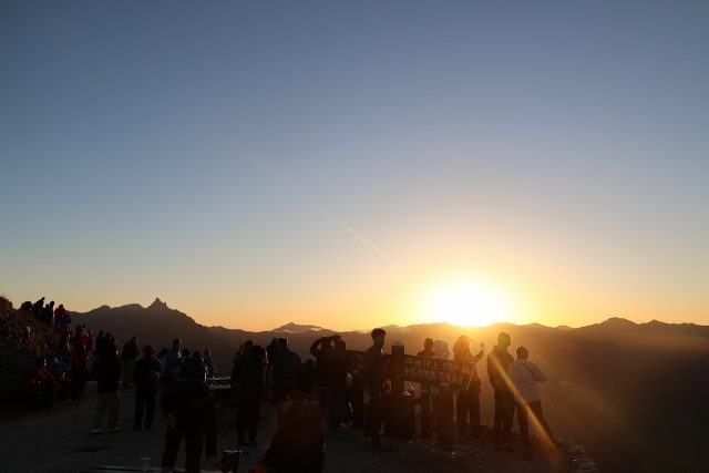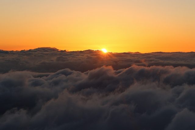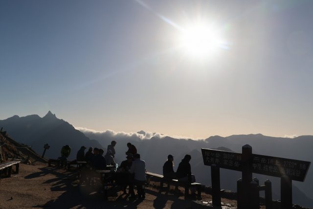 曇りや雨の日が続いていたので、今朝の御来光はとても美しく感じました。雲海から昇る太陽でした。ただ、風も強く、玄関先の温度計は1.4℃。ベンチの上には薄っすらと氷も張っていました。