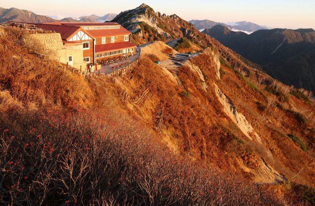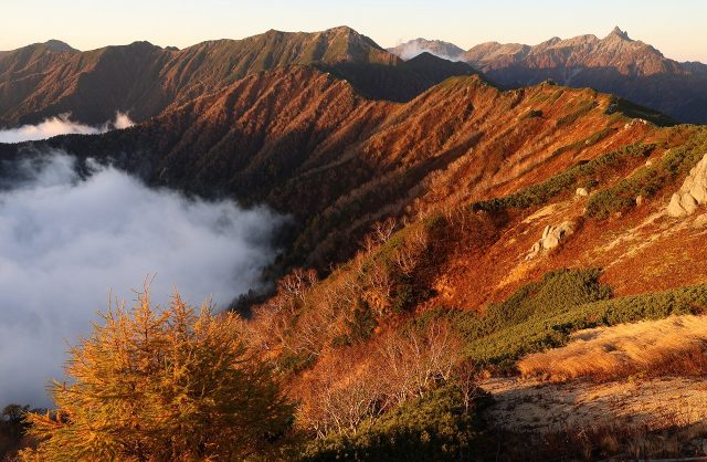 そして、美しい朝焼け。稜線付近の山肌の色はこの雨あがりですっかり晩秋の色へと変わっていました。その色は朝日を浴びて、より一層きれいでした。
