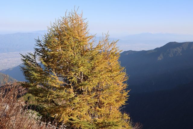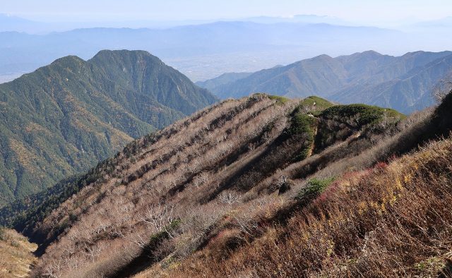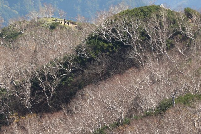 午前中はやや強い東寄りの風が吹いていました。この風の影響だけとは言えませんが、合戦尾根のダケカンバの木々の葉っぱはほぼすっかりなくなっていました。この光景もまた紅葉とは違った美しさがあります。葉っぱがなくなり、視界の良くなった中を歩くのもこの時期ならではの楽しさがあります。