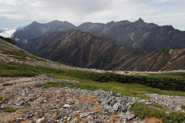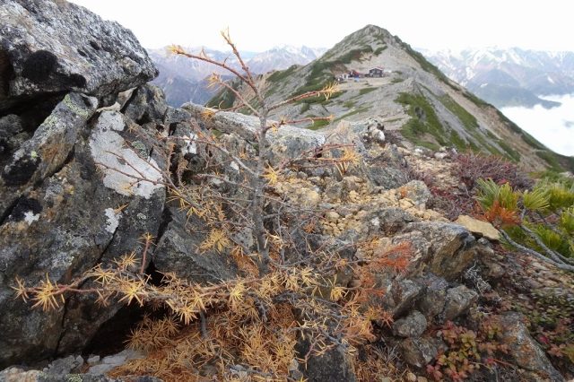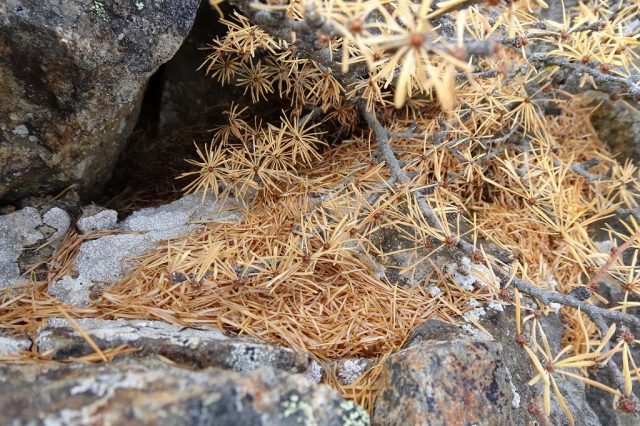 一方で、中天井岳の山頂に生えているカラマツは、気づけばほぼ落葉していました。