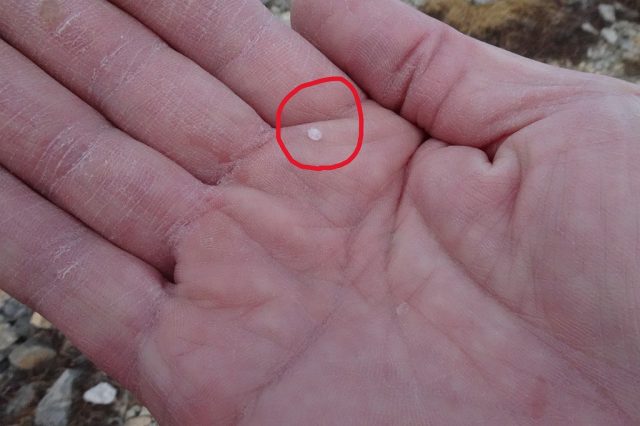 上の槍穂の写真にも、よーく見ると白いものが点々と写ってはいるのです・・・