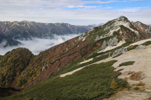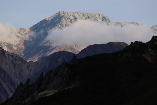 雲が多く、どんよりとした一日でしたが、立山をはじめ北部は雲の切れ間があるのか日差しを受け、かがやいて見えていました。また、大天井方面から来られたお客様は白いものが舞っていた、もしかしたら雪かなという声も聞きました。季節的にももういつ雪が降ってもおかしくない時期に来ています。街では紅葉もまだまだ先であり、山の上との季節感の違いがだいぶ大きくなってきています。山の上はもう、街で言う初冬のような季節へと入ってきています。