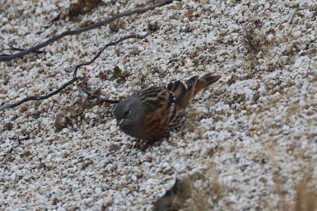 寒くなってきましたが、イワヒバリたちは元気にエサをついばんでいました。水溜りでは気持ちよさそうに水浴びをしていました。葉っぱもほとんどなくなり、寂しい光景になってきていますが、こうして元気にしている鳥たちを見るとなんだか明るい気分になりました。