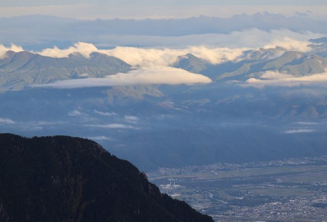 日が沈む17時頃になってようやく松本の街並みが見えるようになってきました。松本と上田佐久方面を結ぶ国道254号線を通る三才山峠付近に現れる雲がちょっと素敵でした。