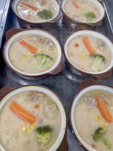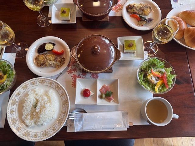こちらが昼食です。パン、ご飯、スープはお代わり自由ですのでこの機会にたくさん召し上がってください。