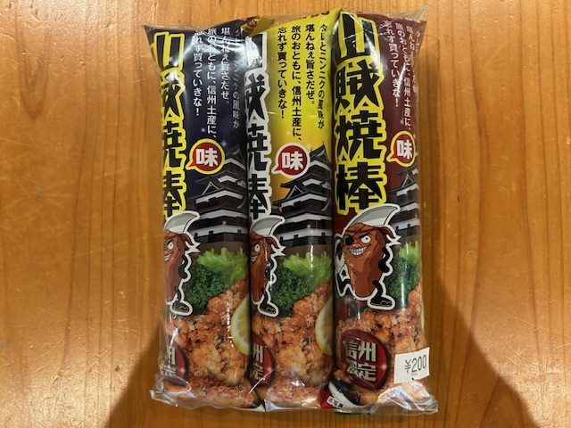 「山賊焼き」といえば長野県中信地方(塩尻市・松本市等)の人気郷土料理です。そんな山賊焼きのスナック菓子が「山賊焼棒」です。