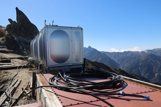 水道の蛇口からも直接水を出すのではなく、タンクから使うように変えました。従来通りご宿泊の方には無料でお分けできますが、これからはいつも以上の節水にご協力をお願いします。残りの営業一か月余りを現在貯えた水だけでやりくりしていくことになります。来週末、少し気温が上がりそうなのでそこでもう一度水上げが出来るといいのですが、上がらない可能性もありますので本日より節水を強化させていただきました。ご理解ご協力お願いいたします。
