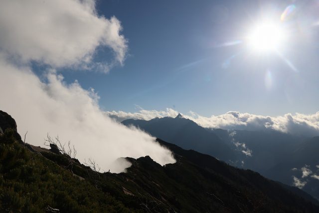 午後になってくると安曇野側には夏のようなガスが湧き上がってきました。街ではまだ気温が高いのでしょうか。