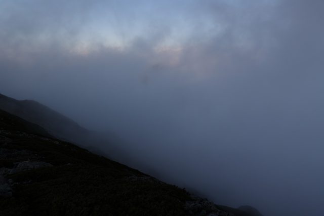 朝方、霧に覆われ続けていた小屋周り、昼前からようやく視界が開け、見る方角によってはスッキリした晴天です。