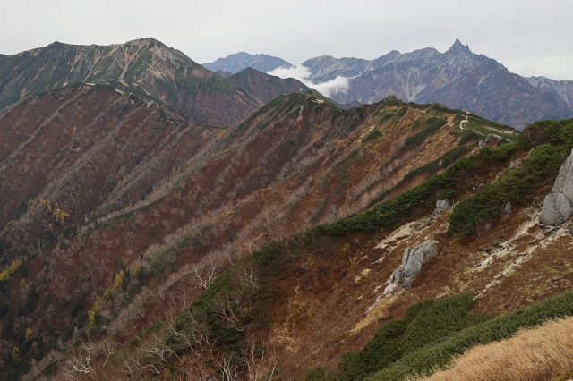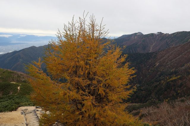 そんなどんよりとした空の下、金色になっているカラマツが美しく見えました。