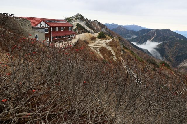 今日こそはと朝、外を見ているとまたしても雲海が・・・しかし、昨日までとは違い、松本辺りの街並みが見えていて、池田あたりの街も徐々に見え出してきました。もしかして今日こそは雲海も消え、ヘリコプターの荷上げが出来るのかもと期待が高まりました。