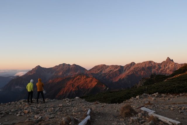 槍・穂高方面も綺麗に染まりました。