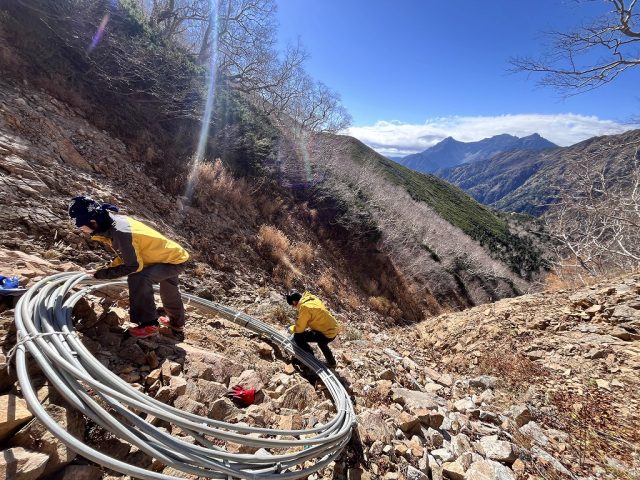 日中も晴れており、水源地に最後のパイプを巻き取りに行きました。