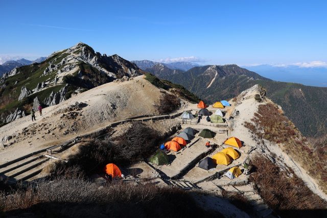 今朝も安曇野や長野の盆地には寒くなると現れる霧がかかっていましたが、日中になるとそれも取れ、きれいに街並みまで見ることが出来ました。すっかり晩秋の様相です。燕山荘の今シーズンの営業もあと1か月となってきました。