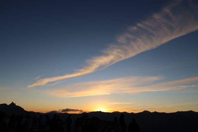 好天に恵まれた今日、久々の素敵な日の入りを見ることが出来ました。太陽が沈む位置は双六岳へと移っていました。そして、日が沈めば気温は急激に下がり始め、たちまち氷点下へと下がっていきました。10月後半ともなれば朝晩の氷点下は日常的なものとなってきます。こうなってくるといつ初雪が降ってもおかしくありませんね。