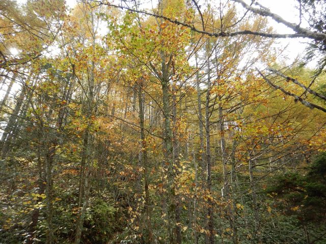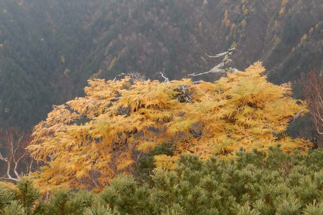 合戦沢の頭から少し上がったところにある、僕らがお褒めの松と呼んでいるカラマツは今がピークといった感じできれいでした。これに雪景色が伴えばさらに美しくなることでしょう。