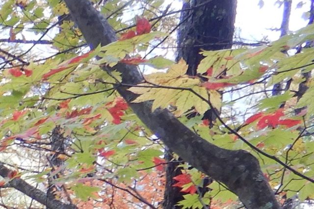 昨日の雨を境に季節は一気に進んだようです。登山口辺りの紅葉も終盤といった感じ。強い風が吹くと葉っぱがひらひらと舞ってきました。落ち葉を踏みしめながら歩く登山も趣があって、なかなかいいものです。