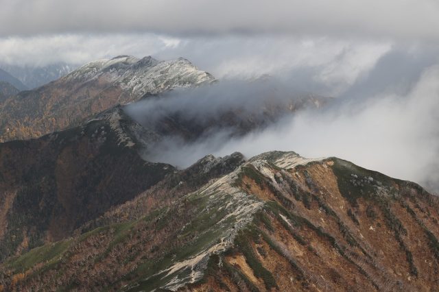 槍穂高の峰々は粉砂糖をまぶしたよう。