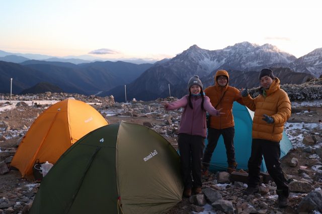夕陽を撮影しに外にでてみると、3張のテントを発見!