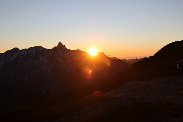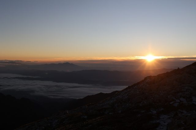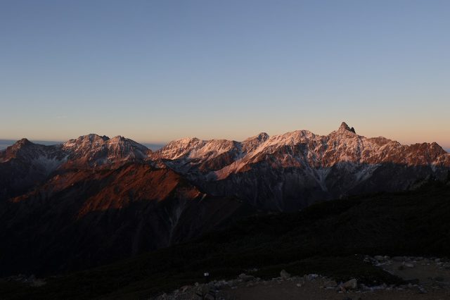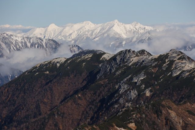 燕岳の奥、立山はしっかりと雪が積もっているのが分かります。