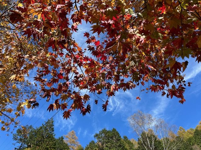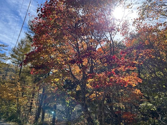 下界(特に太平洋側の地域)ですとまだ紅葉最盛期には少し早いと思います。しかし、有明荘なら素敵な紅葉を見ることができます。私自身も日々有明荘で働く中で紅葉、景色に癒されています。