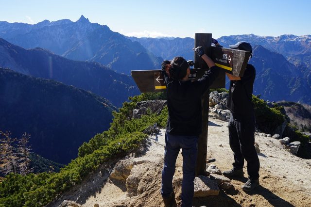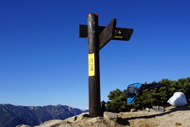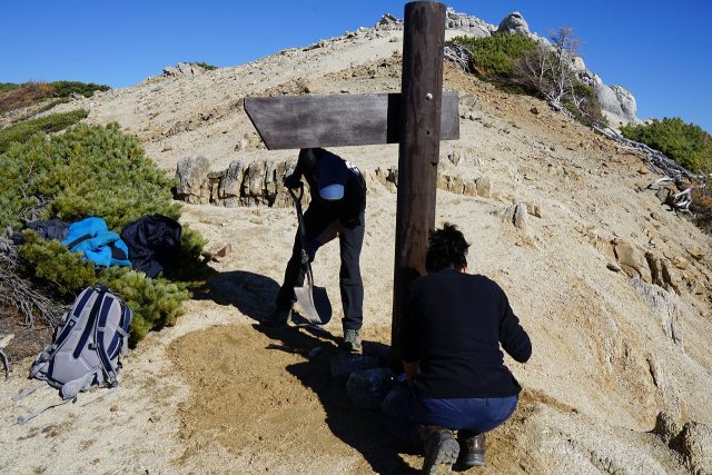 大下りの頭にある道標の入れ替え作業に行ってきました。統一した道標にしようとここ最近この作業が進んでいます。大下りの頭も立派な道標になりました。ただ、先日の冷え込みで地面は凍っていて、地面を掘るのに少々苦労しました。これより先延ばしにしてしまうとさらに地面が固くなってしまうので、今日がチャンスと出掛けた次第です。この作業中、頭上を10羽以上のタカが通過していきました。鷹の渡りと言えば9月の下旬辺りから始まるのですが、こんな時期まで見られるとは新たな発見でした。