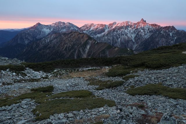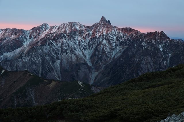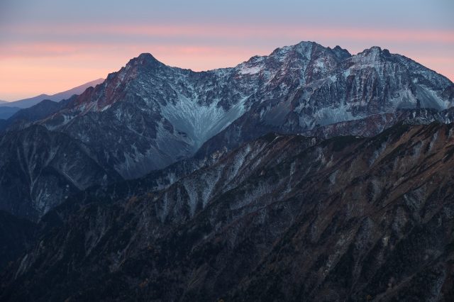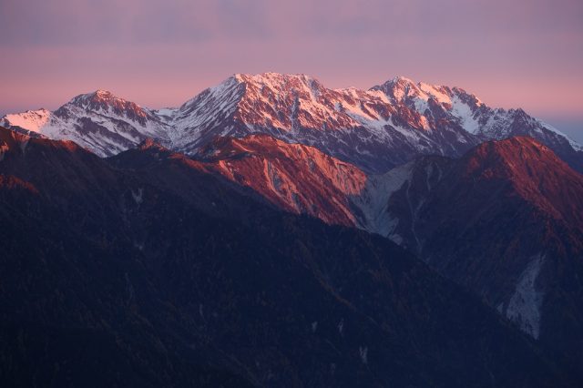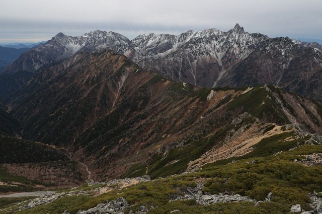 ここへきて寒気の影響を受けやすくなり、3000m級の稜線は初冬の装いとなっています。