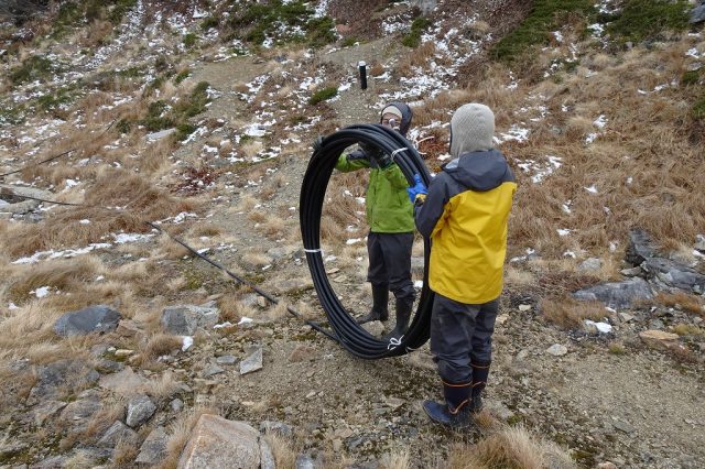 今夕からの降雪予報に加え、水道管や排水口の凍結の影響も鑑み、小屋周りの水の配管は全て撤収しました。